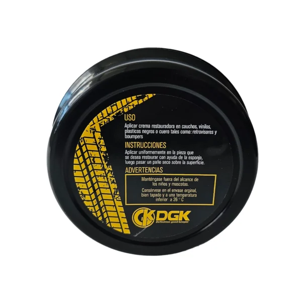 Aplicar la crema restauradora sobre superficies de caucho, vinilo, plásticos negros o cuero, como retrovisores y bumpers.